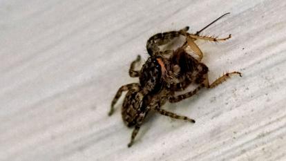 Rindenspringspinne (Marpissa muscosa) -- Springspinne